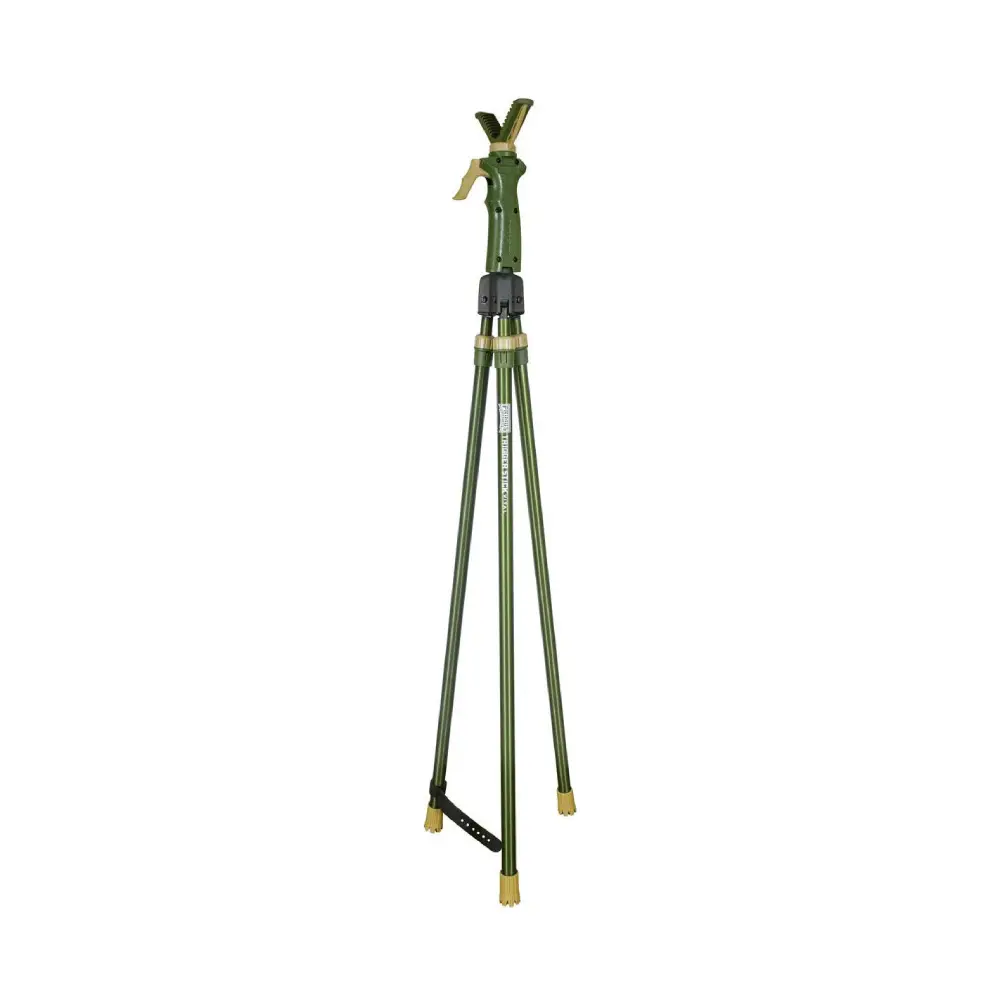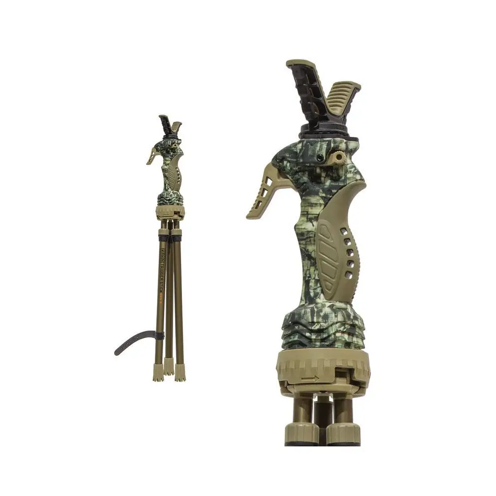 Un trípode con rótula o un monópode telescópico permite mantener el arma alineada mientras localizas o sigues a la pieza. Son silenciosos y fáciles de regular sobre el terreno.