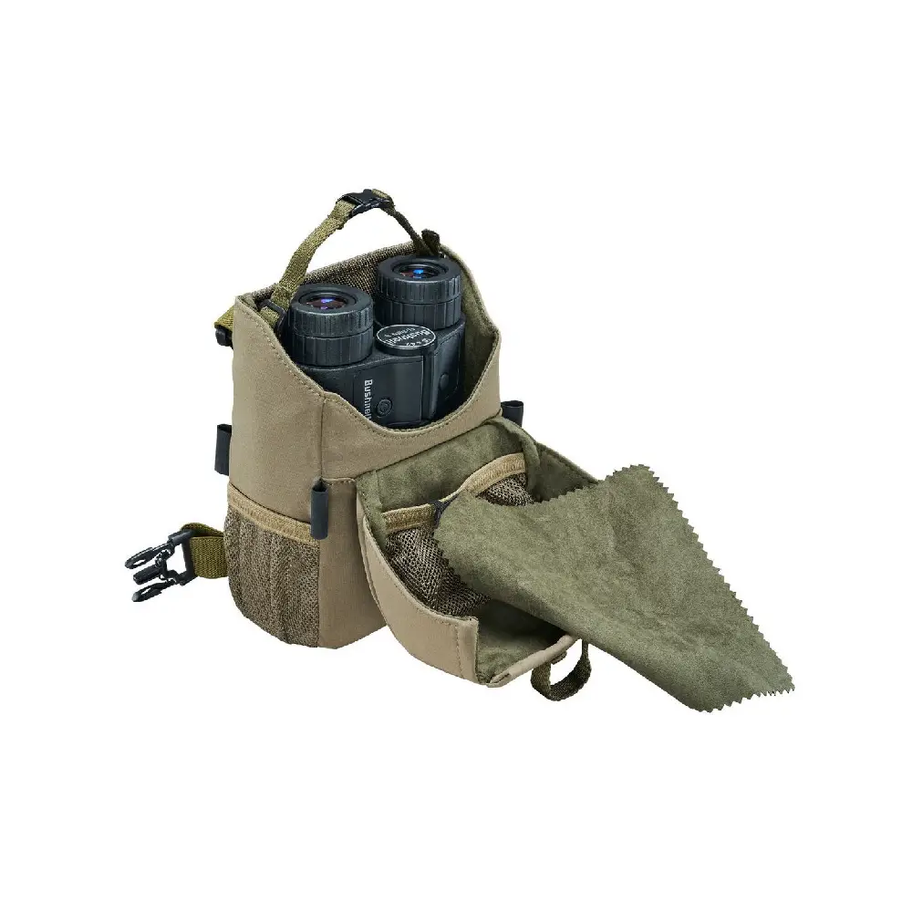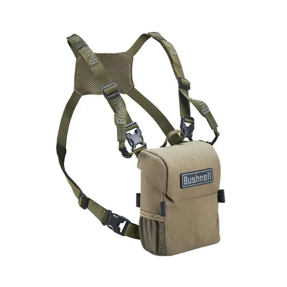 El arnés con mochila modular Bushnell Vault es un sistema 2 en 1 que combina arnés de pecho y mochila protectora para transportar prismáticos de forma cómoda, segura y silenciosa. Su diseño modular permite usar solo el arnés o añadir la mochila según las necesidades, ofreciendo protección total y acceso rápido al equipo durante actividades como caza, observación de fauna o senderismo.