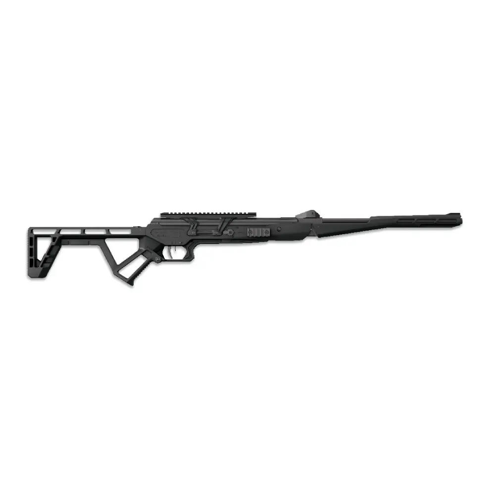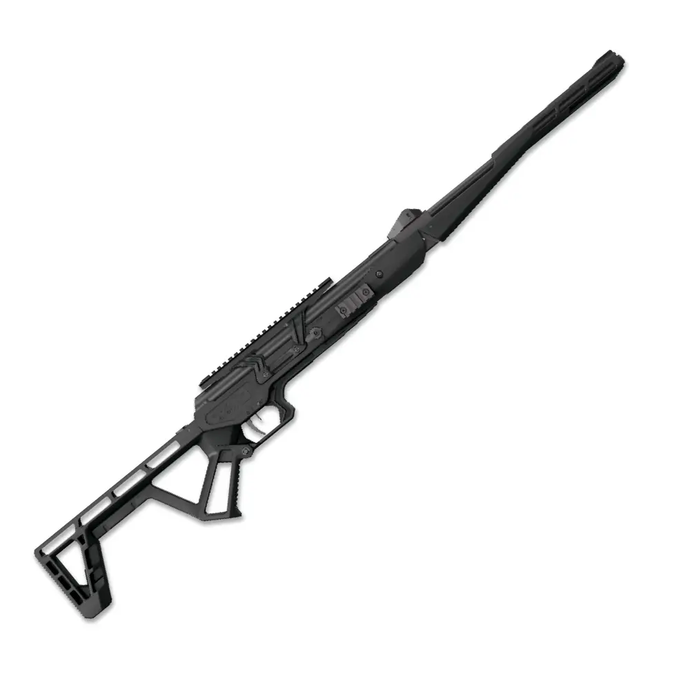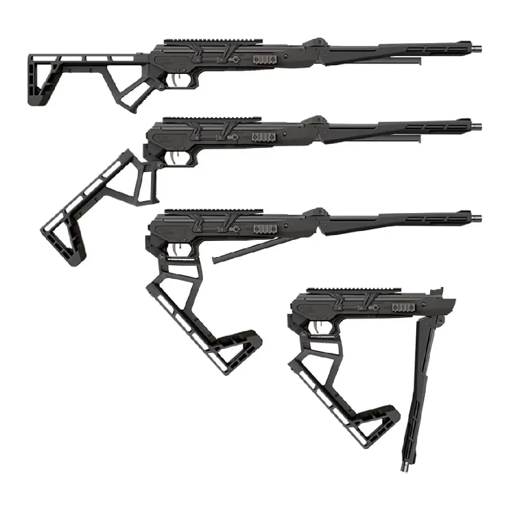 Carabina plegable Black Bunker BM8 (.177): diseño survival compacto con pistón de gas (gas-ram), raíl Picatinny, rosca en boca y funda resistente al agua.