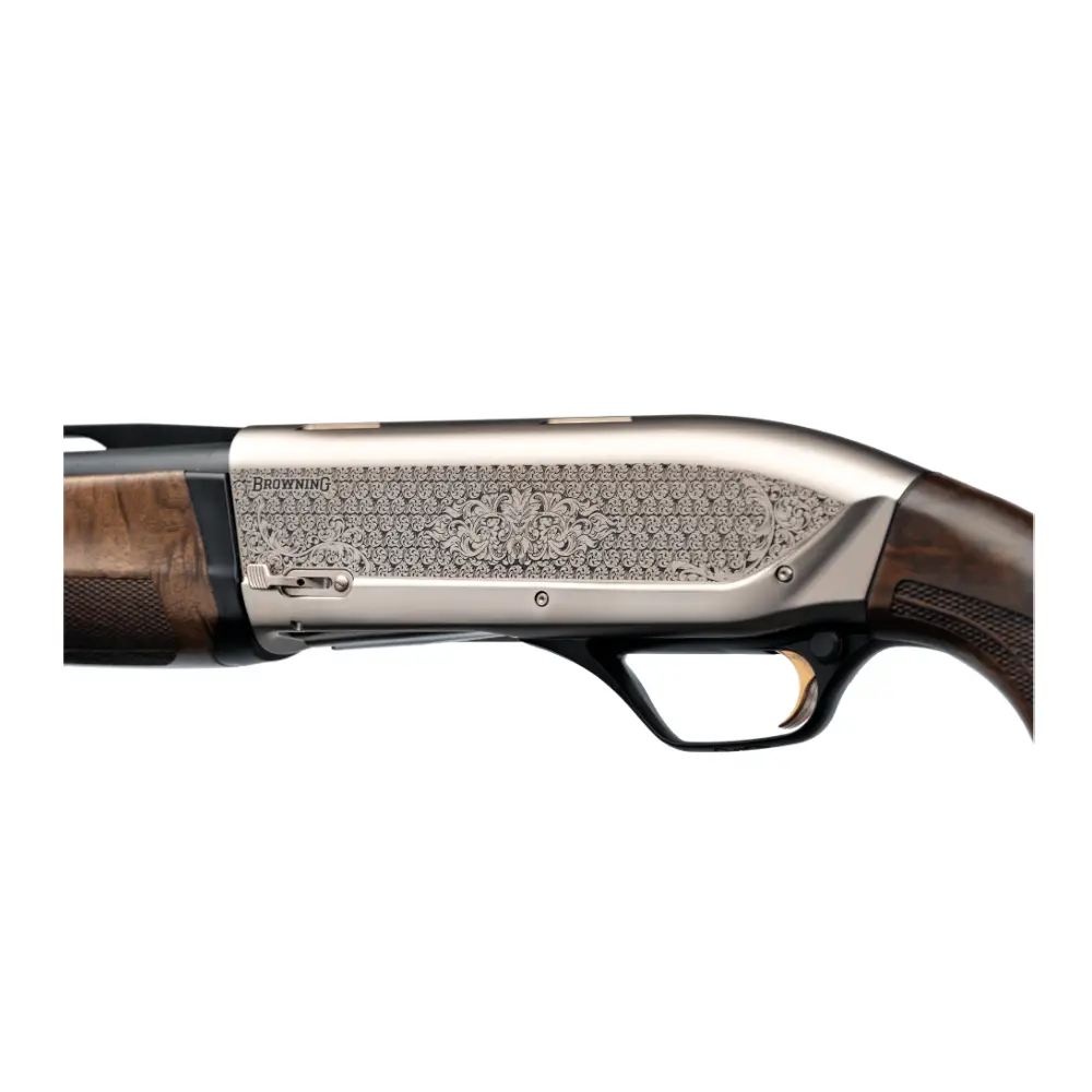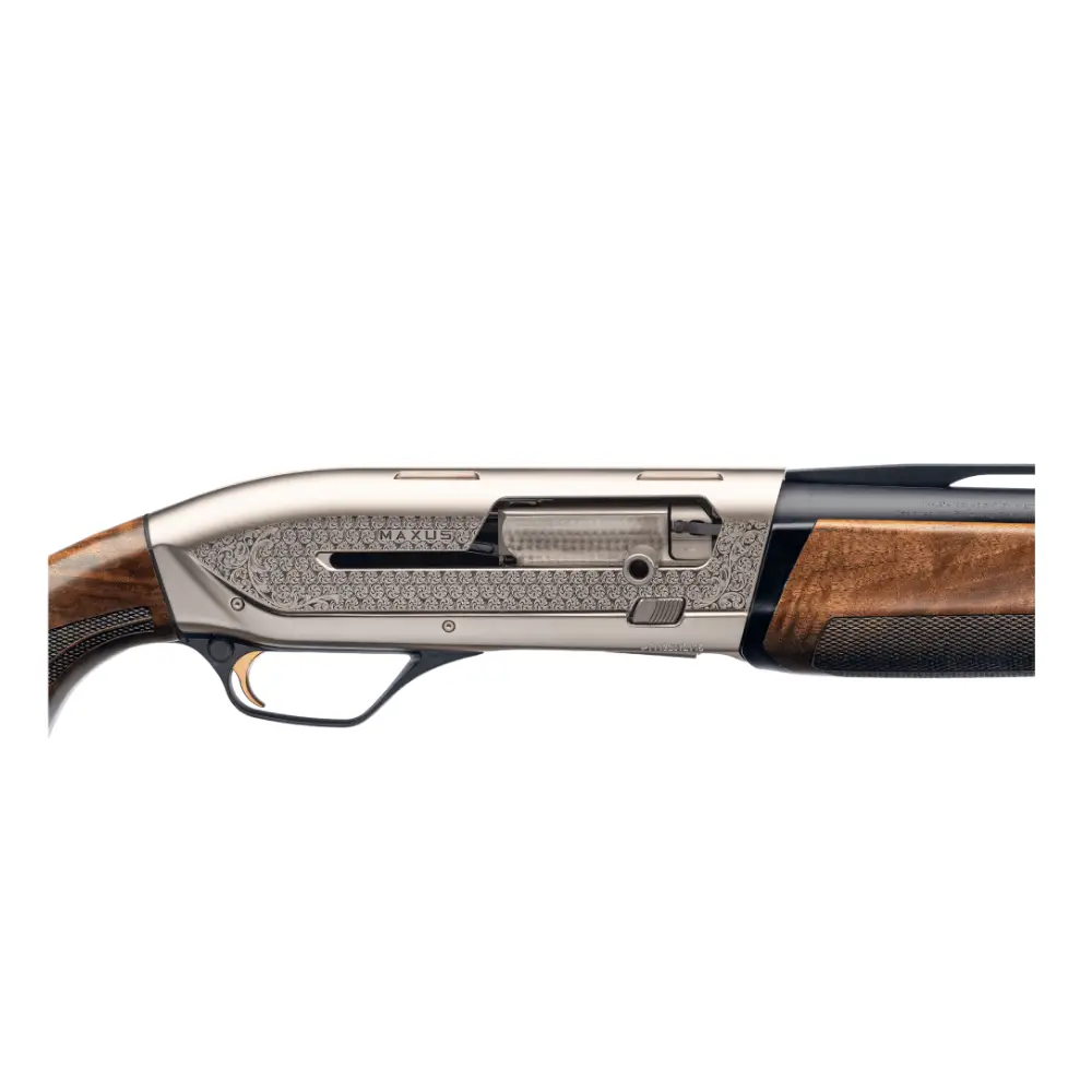 La Maxus 2 Wood Ultimate es una escopeta semiautomática de caza exclusiva, con culata de nogal turco grado III, receptor de aluminio en acabado níquel satinado y grabados de aves finamente cincelados. Integra el sistema Power Drive Gas, gatillo Lightning Trigger, culata ajustable con espaciadores y Inflex II + SoftFlex para un disparo suave y confortable. Equipada con cañón Back‑Bored, rib ventilado y chokes Invector‑Plus, es perfecta para cazadores exigentes.