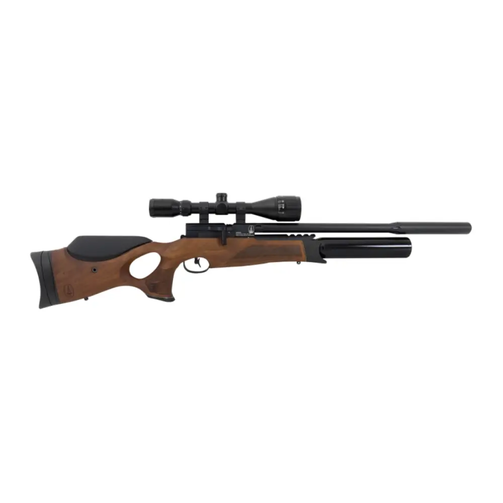 La BSA R12 CLX Pro Sidelever Walnut es una carabina PCP de alta gama diseñada para ofrecer precisión, suavidad de manejo y una estética clásica. Su culata de nogal, cuidadosamente terminada y ergonómica, aporta equilibrio y comodidad durante el disparo, mientras que su mecanismo de palanca lateral (sidelever) garantiza una acción fluida y consistente. Basada en la reconocida plataforma CLX de BSA, esta versión Pro incorpora mejoras en eficiencia, estabilidad del regulador y capacidad del depósito, ofreciendo un rendimiento fiable tanto para tiro deportivo como para entrenamientos de precisión.