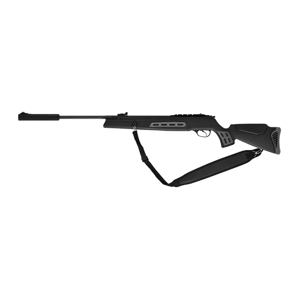 Carabina de aire comprimido con sistema de muelle helicoidal (spring-piston), diseño táctico estilo “sniper” y riel para montaje de óptica. Ofrece potencia y precisión en una plataforma robusta, pensada para tiro recreativo.