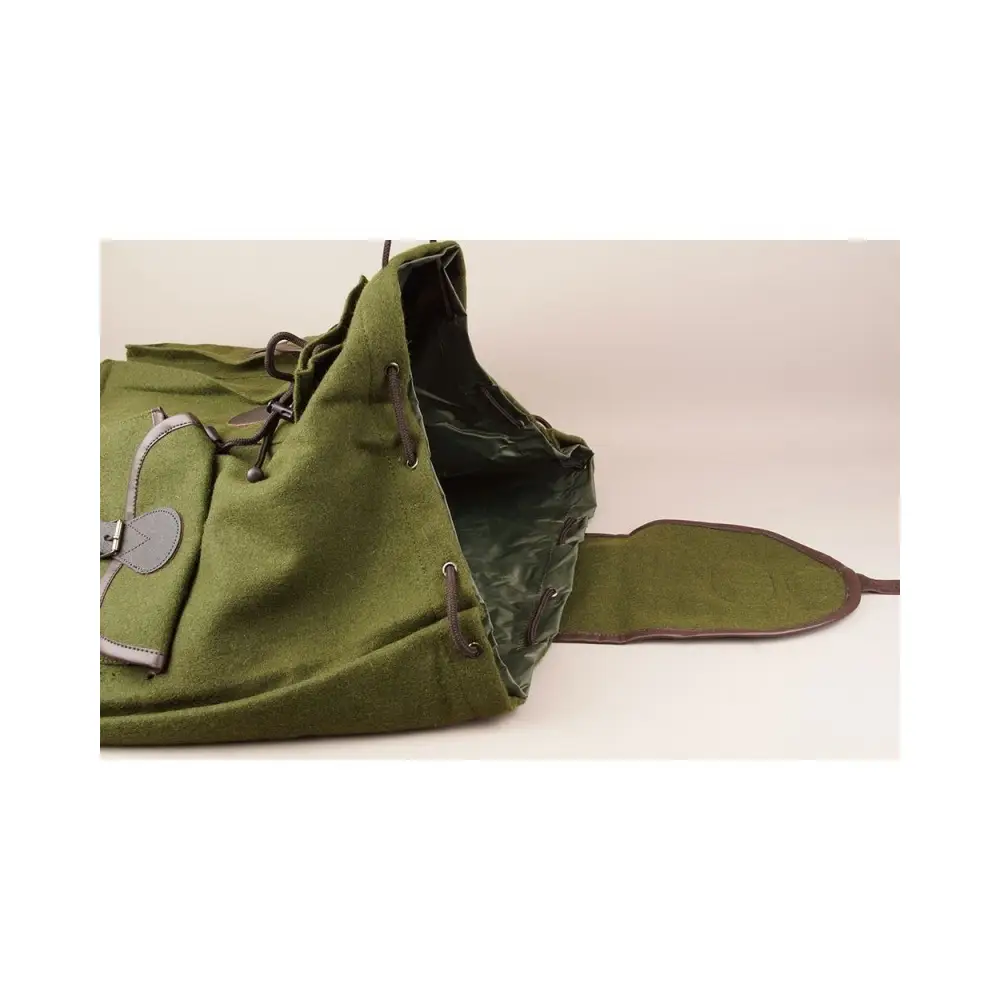Mochila-saco de gran capacidad (52 litros). 100% loden, repelente al agua. Acabados en cuero.
