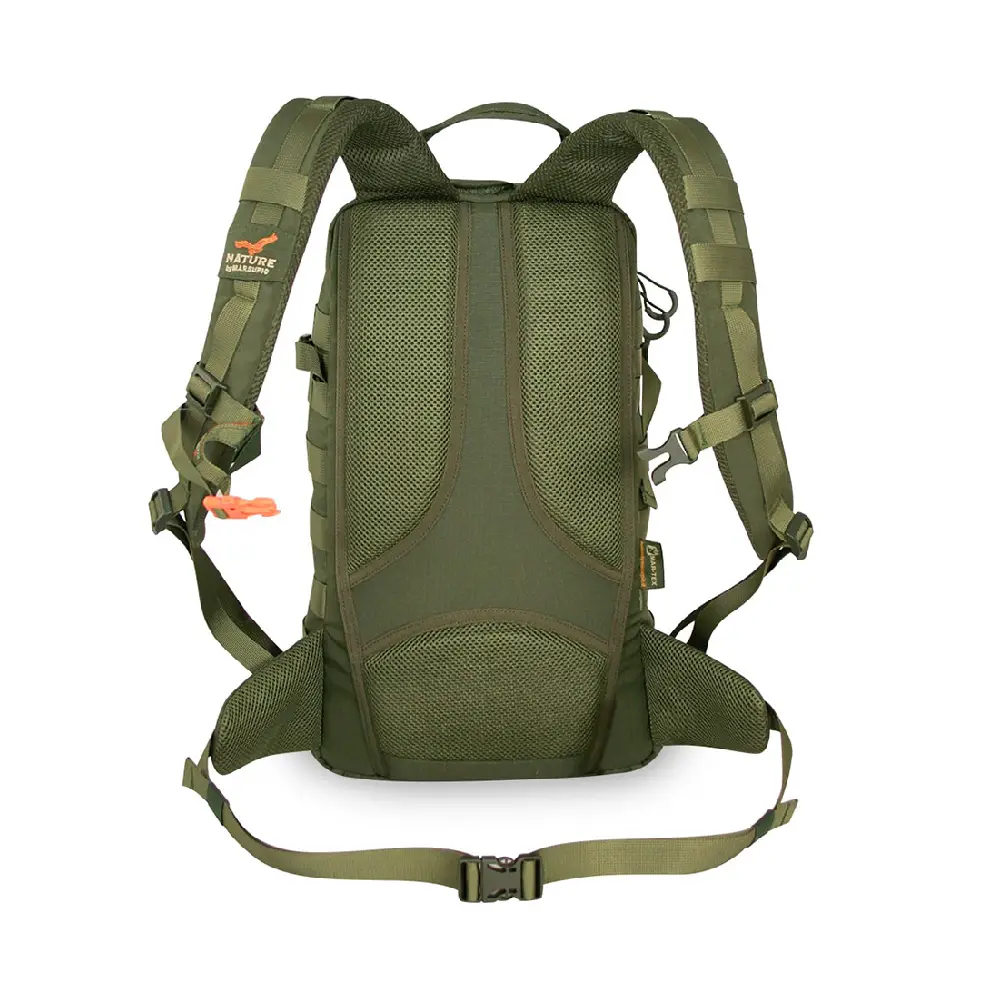 Gracias a su espalda acolchada, hombreras ergonómicas y cinturón ajustable, proporciona estabilidad y comodidad durante largas caminatas, recechos o uso outdoor exigente.