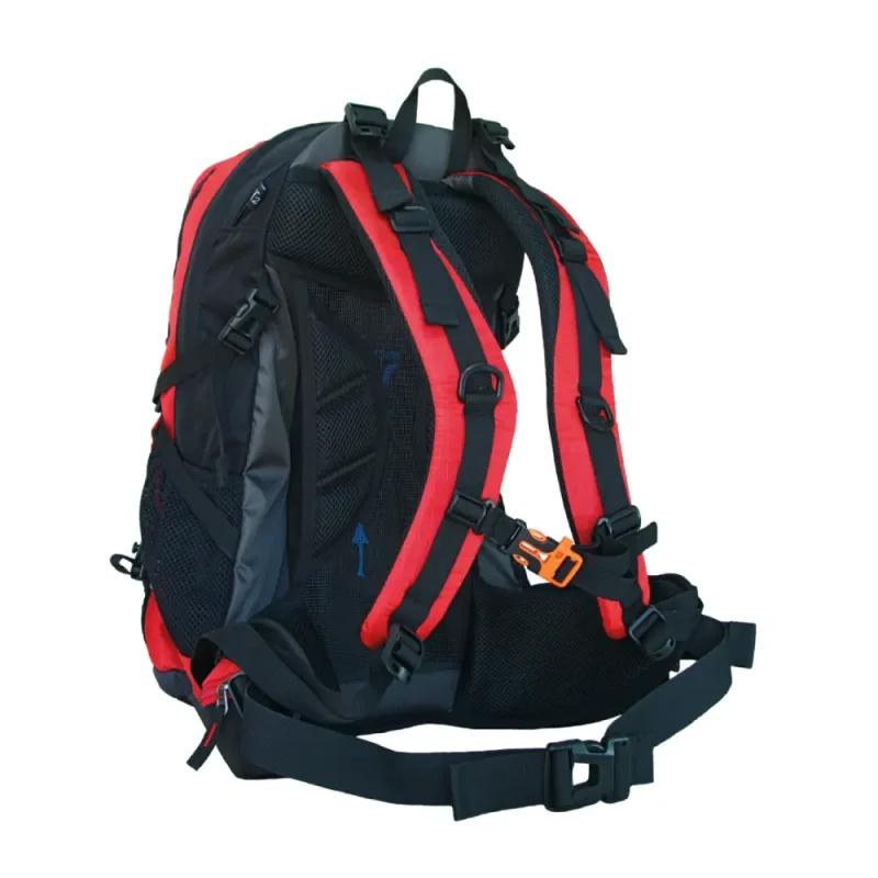 Dispone de dos compartimentos principales, bolsillo frontal y bolsillos laterales, además de una funda impermeable integrada para proteger tu equipo en caso de lluvia. Su espaldera ergonómica con estructura metálica y tirantes acolchados con sistema Air Speed System garantizan ventilación y confort durante largas jornadas.