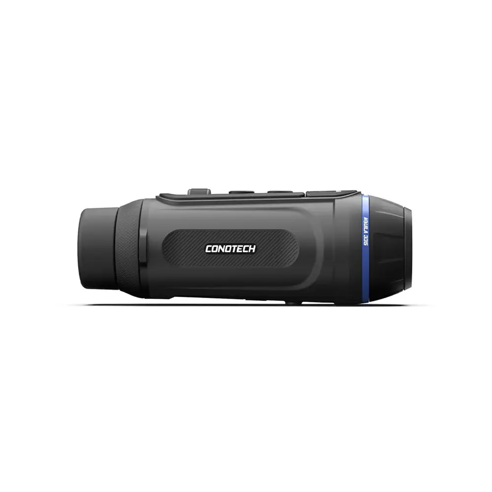 El Conotech Aquila 325 es un monocular térmico portátil de mano, diseñado para ofrecer imágenes térmicas claras y detalladas con una sola mano. Equipado con un sensor no refrigerado VOx de alta sensibilidad y una pantalla OLED de alta resolución (1024×768 px), el Aquila 325 permite captar diferencias de temperatura mínimas (< 25 mK), lo que facilita la detección en condiciones nocturnas o con escasa visibilidad. Incorpora zoom suave (2,4–10×), recarga rápida (hasta 90 % en 1 h), doble batería (interna extraíble + externa) y conectividad Wi‑Fi para gestión de firmware y transmisión. Su construcción robusta, ligera (~560 g) y resistente al agua (IP67) lo hace ideal para actividades al aire libre como vigilancia, caza o rescate.