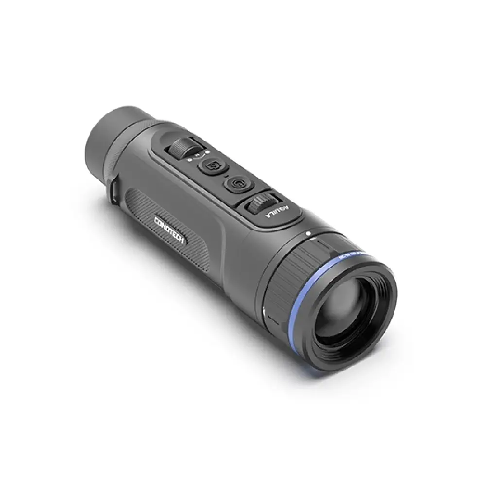 El Conotech Aquila 6D 19/38 es un monocular térmico de nueva generación, diseñado para ofrecer máxima versatilidad operativa en condiciones nocturnas o de baja visibilidad. Equipado con un sensor térmico VOx de alta resolución (640×512 px, 12 µm) y una innovadora óptica de doble lente (19 mm y 38 mm), este modelo permite alternar entre un campo de visión amplio y un zoom óptico preciso sin necesidad de reiniciar el dispositivo ni modificar su configuración interna.