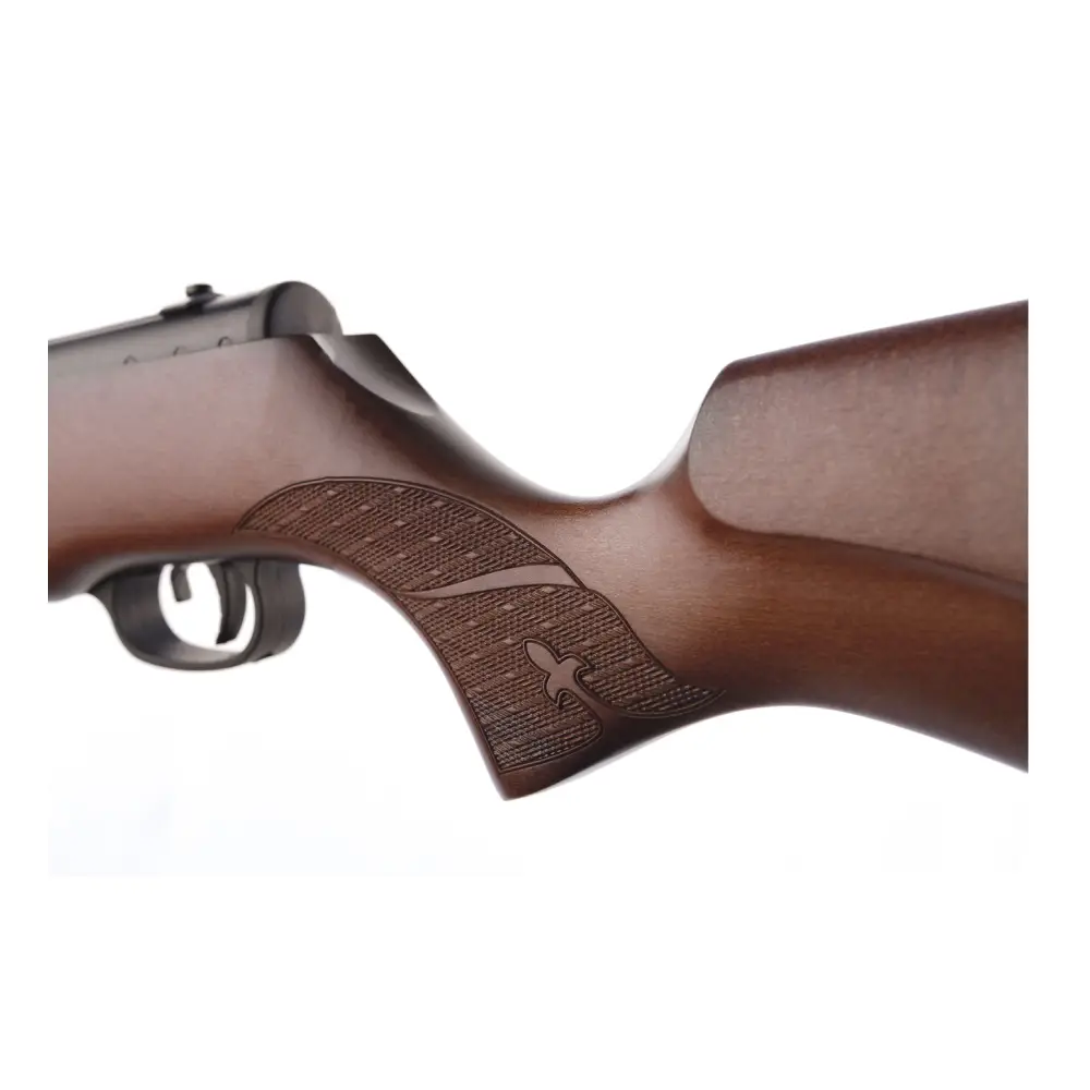 Su sistema tradicional de muelle-pistón ofrece autonomía completa sin necesidad de depósitos de aire externos. Incluye seguro automático, miras abiertas con fibra óptica para una adquisición rápida del objetivo y carril de 11 mm para montaje de visor.