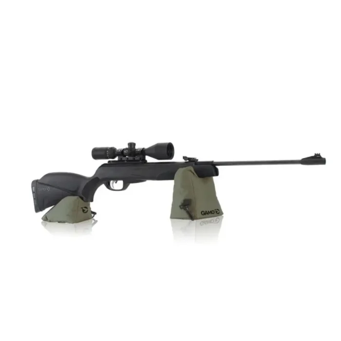 El Saco de Tiro II de Gamo es un set de 2 bolsas de apoyo diseñadas para mejorar la precisión en el disparo con carabinas de aire comprimido. Están fabricadas en poliéster resistente, tienen forma ergonómica y se pueden rellenar con arena seca para mayor estabilidad.