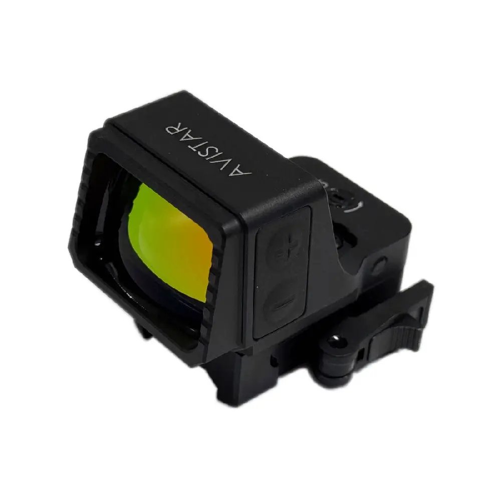 Visor tipo “punto rojo” Avistar AV25 1×33 con retícula de 3 MOA, carcasa de aluminio anodizado, sensor de movimiento y montura Picatinny incluida. Ideal para tiro rápido e instintivo.