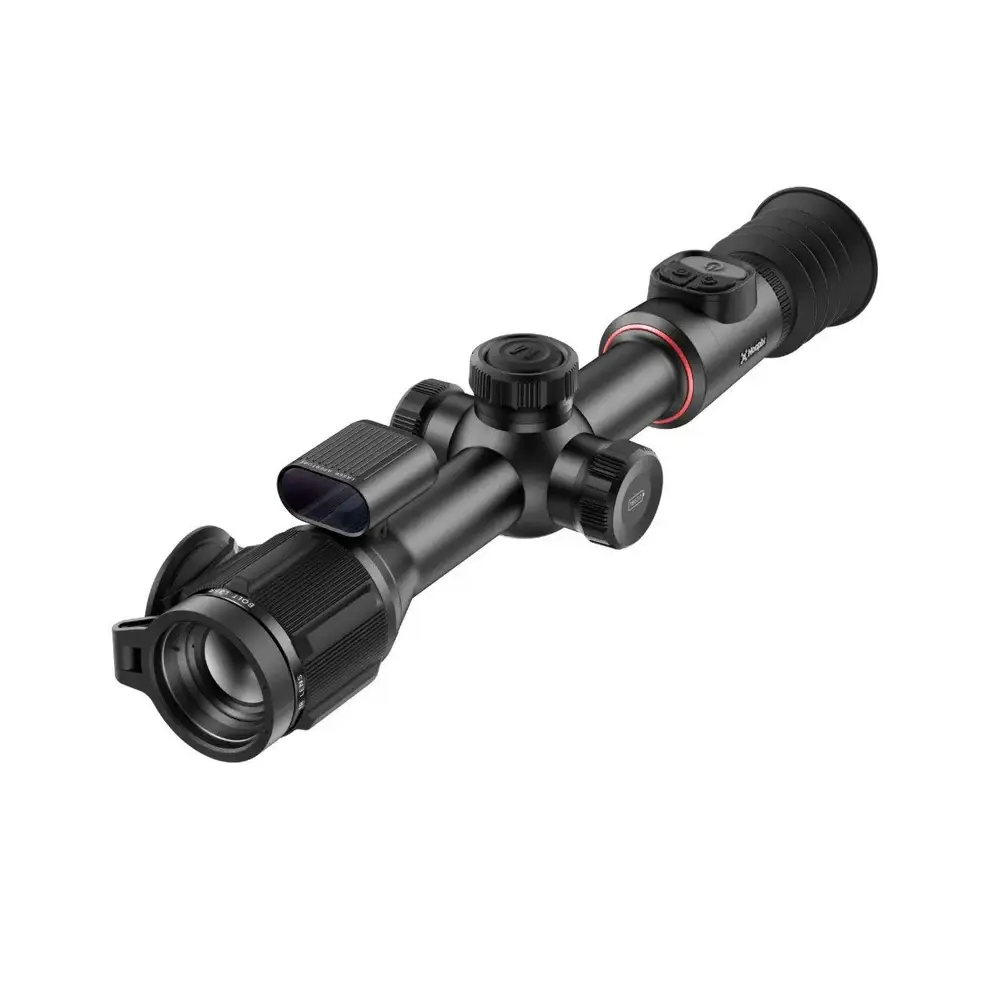 Gracias a su sensor térmico de 384×288 px con NETD ≤20 mK, ofrece imágenes nítidas incluso en condiciones complicadas como niebla, vegetación densa o total oscuridad. Su lente de 35 mm y su alcance de detección de hasta 1.800 metros permiten identificar objetivos con claridad a larga distancia.